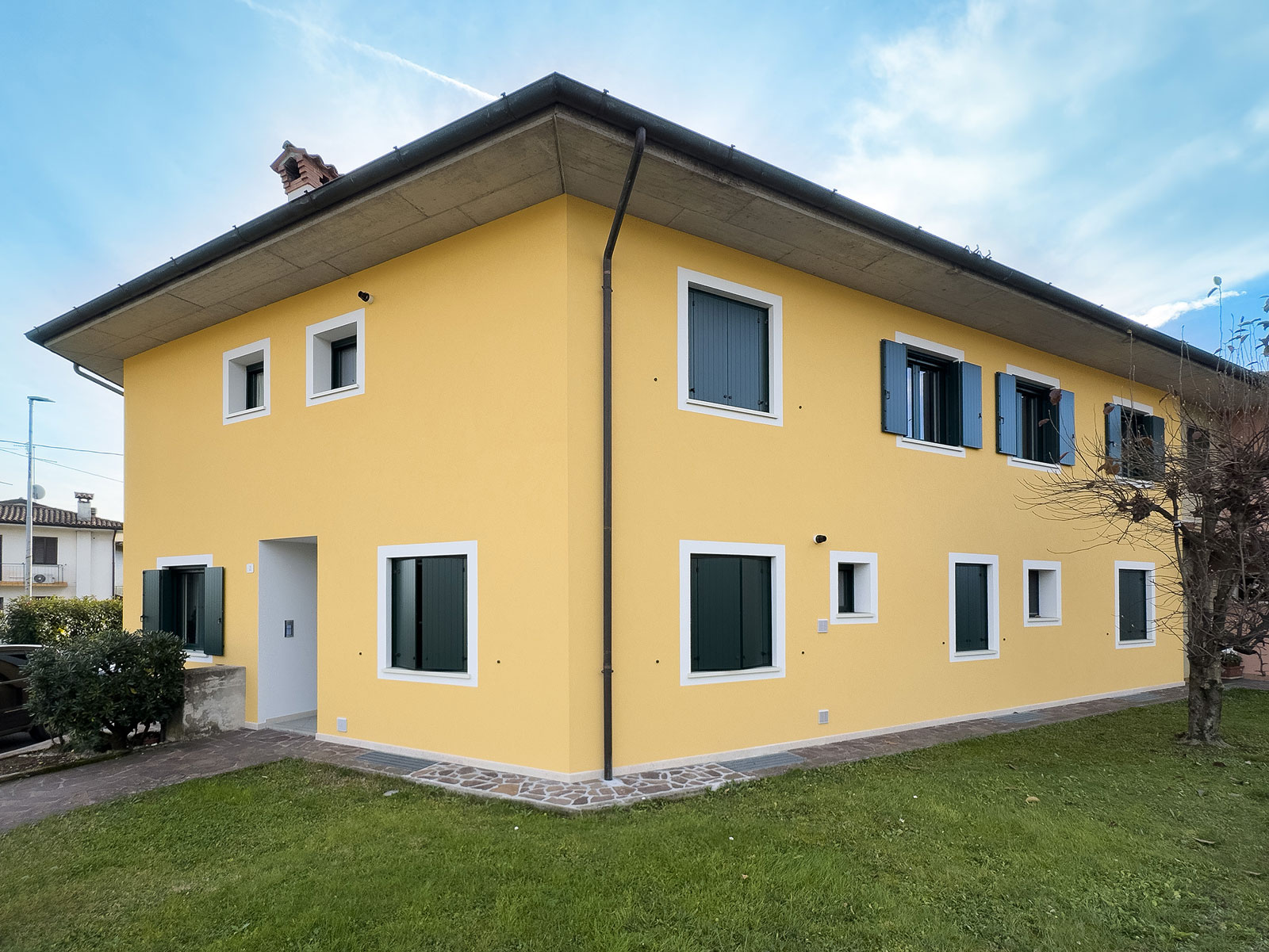 Rifacimento serramenti in Alluminio a Taglio Termico e scuri in alluminio per un piccolo condominio dallo stile tradizionale