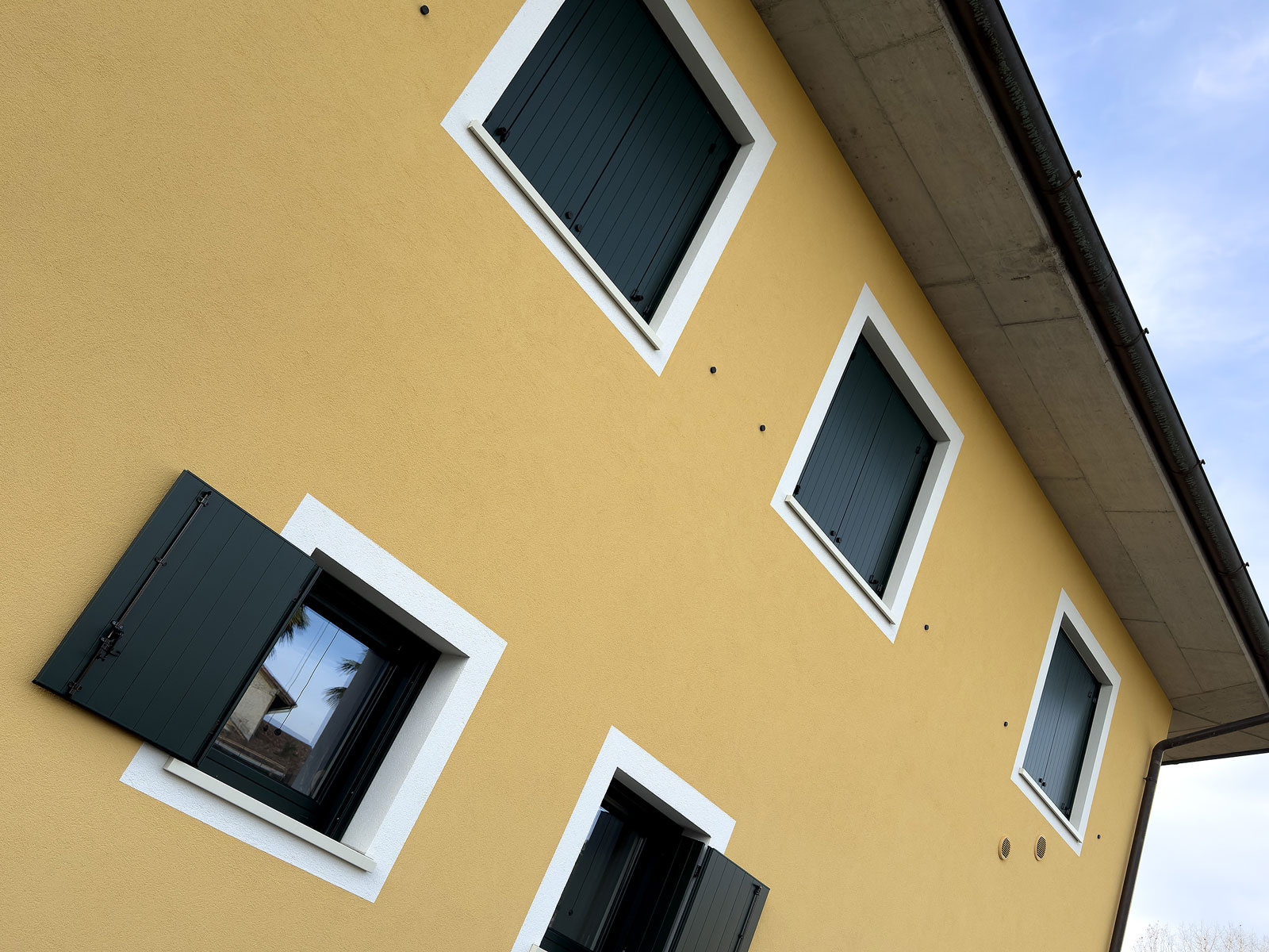 Nonostante la diversità delle aperture, il risultato finale è un insieme coerente ed equilibrato, in cui ogni finestra mantiene le proprie caratteristiche dimensionali ma contribuisce a un’immagine complessiva ordinata e curata.