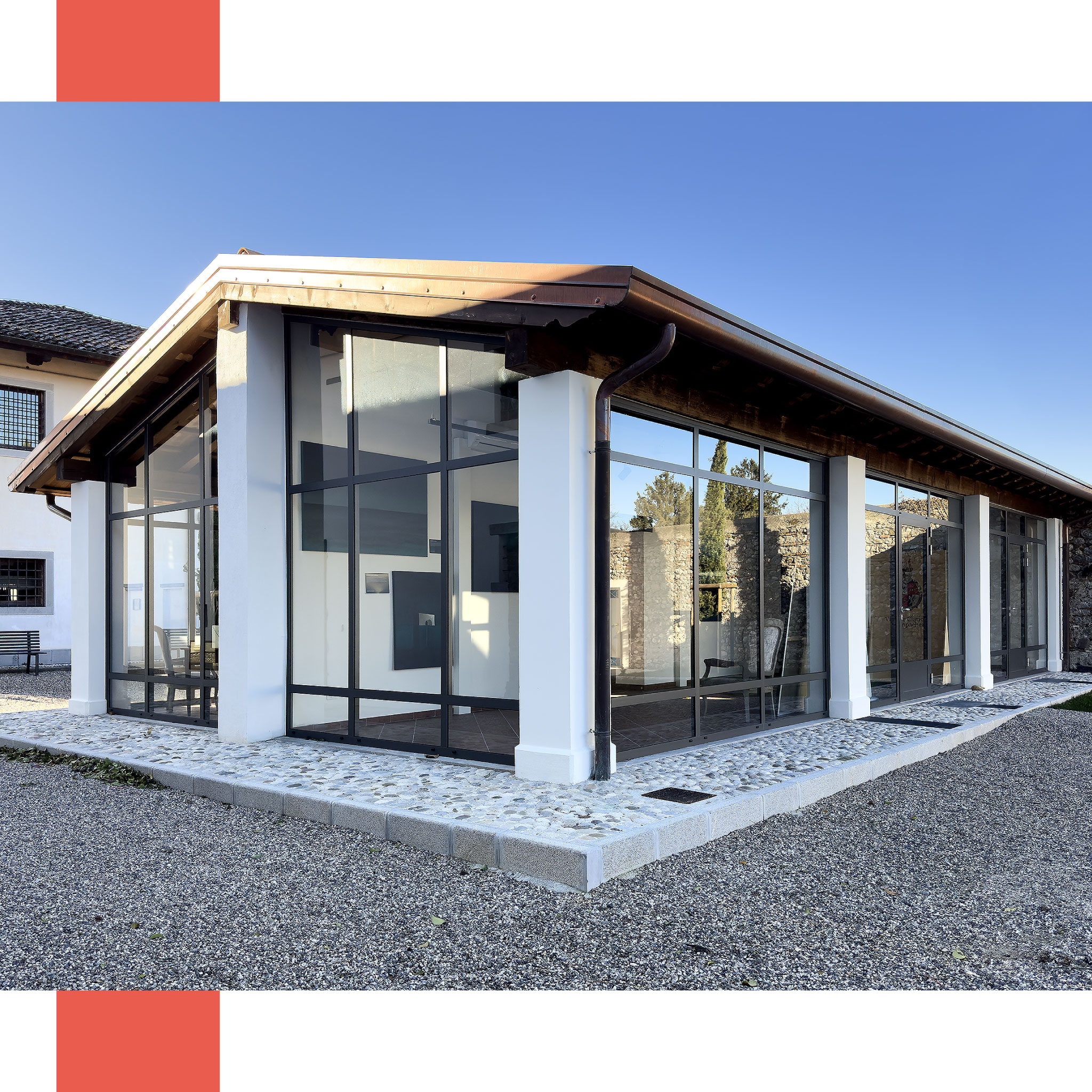 In questa splendida dimora risalente alla fine del 1600, abbiamo curato la chiusura perimetrale del porticato, con l’obiettivo di creare un nuovo spazio destinato a Bookshop e punto ristoro per i visitatori della villa.